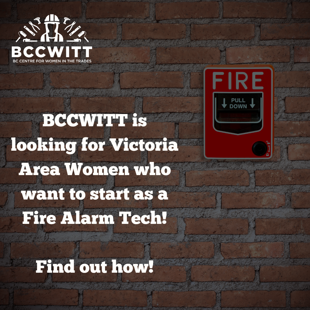 The BC Centre for Women in the Trades is recruiting women in the Victoria area who want to start working as Fire Alarm / Fire Protection Technicians! Fire Alarm Technicians install, inspect, test, and repair fire alarm systems to ensure they are functioning correctly and comply with safety regulations.